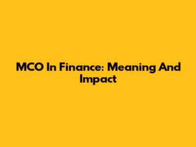 MCO In Finance: Meaning And Impact