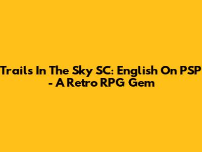 Trails In The Sky SC: English On PSP - A Retro RPG Gem