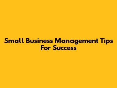 Small Business Management Tips For Success
