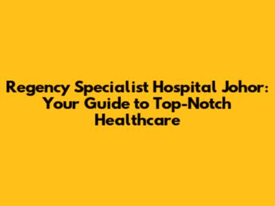 In conclusion, Regency Specialist Hospital in Johor stands out as a leading healthcare provider, offering a wide array of medical specialties, cutting-edge facilities, and a patient-centered approach. From cardiology to pediatrics, the hospital is equipped to address diverse medical needs with expertise and compassion. The emphasis on patient experience, combined with advanced technology, ensures that individuals receive the highest standard of care. Whether you're a local resident or a visitor, understanding the services and accessibility of Regency Specialist Hospital can provide peace of mind when seeking medical assistance in Johor. With its commitment to excellence and comprehensive care, Regency Specialist Hospital remains a trusted healthcare destination for the community.