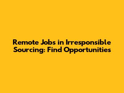 Finding remote opportunities in the field of irresponsible sourcing requires a strategic approach. Here's a breakdown of where to look and how to make your application stand out: