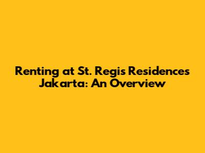 Hey there, real estate enthusiasts! Are you dreaming of experiencing unparalleled luxury in the heart of Jakarta? Look no further than the St. Regis Residences Jakarta! If you're pondering the idea of renting at St. Regis Residences Jakarta, you've come to the right place. We're going to dive deep into everything you need to know about these exquisite residences, ensuring you're well-equipped to make an informed decision. So, grab your favorite drink, sit back, and let's explore the world of luxury living in Jakarta together! The St. Regis Residences Jakarta offers a unique blend of sophisticated living and world-class services, making it a highly sought-after address for discerning individuals and families. The residences are known for their exceptional design, prime location, and an array of amenities that cater to every need. Whether you're a seasoned expat, a local looking for an upgrade, or simply someone who appreciates the finer things in life, renting at St. Regis Residences Jakarta could be the perfect move for you. The residences are typically available in various configurations, including spacious apartments and penthouses, each meticulously designed with high-end finishes and modern conveniences. From the moment you step into the grand lobby, you'll be greeted by an atmosphere of elegance and refinement. The dedicated concierge services are always ready to assist with any request, ensuring a seamless and stress-free living experience. And let's not forget about the stunning views of the Jakarta skyline that many of the residences offer, providing a breathtaking backdrop to your everyday life. Plus, with the central location, you're always a stone's throw away from Jakarta's best shopping, dining, and entertainment options. We're talking about a lifestyle upgrade, folks! Keep reading to discover everything about renting at St. Regis Residences Jakarta, including the benefits, the costs, and the steps involved in securing your dream residence.