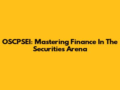 OSCPSEI: Mastering Finance In The Securities Arena