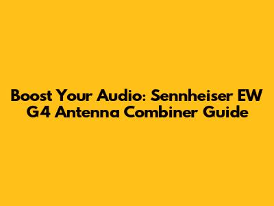 Boost Your Audio: Sennheiser EW G4 Antenna Combiner Guide