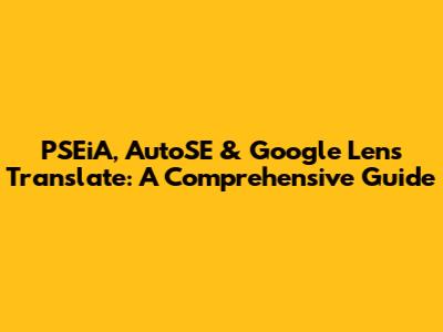 PSEiA, AutoSE & Google Lens Translate: A Comprehensive Guide