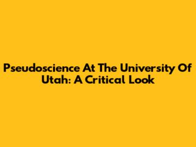 Pseudoscience At The University Of Utah: A Critical Look