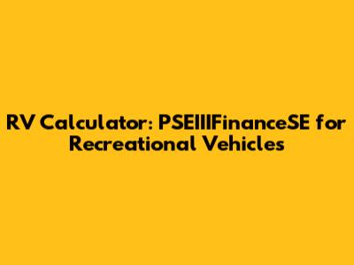 Diving into the PSEIIIFinanceSE RV Calculator