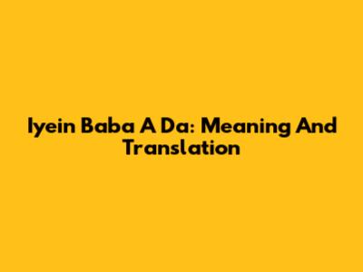 Iyein Baba A Da: Meaning And Translation