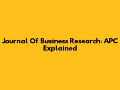 Journal Of Business Research: APC Explained