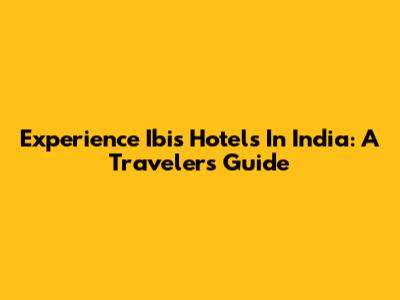 Experience Ibis Hotels In India: A Traveler's Guide