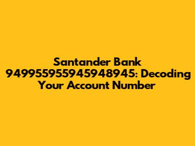 Understanding your Santander Bank account number, like 949955955945948945, is super important for managing your finances effectively. This seemingly random string of digits is actually a key piece of information that unlocks access to your account and enables various banking activities. Whether you're setting up direct deposits, making online transfers, or simply trying to reconcile your statements, knowing your account number is essential. In this article, we'll break down the significance of your Santander Bank account number, why it matters, and how to keep it safe. So, let's dive in and unravel the mystery behind those digits, making your banking experience smoother and more secure!