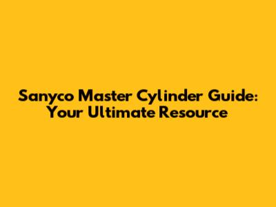 What is a Sanyco Master Cylinder, Anyway?