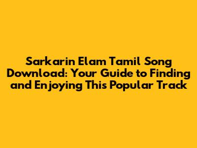 By following these tips and guidelines, you'll be able to find, download, and enjoy the Sarkarin Elam Tamil song safely and responsibly. Happy listening!