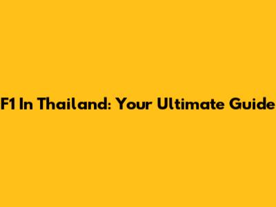 F1 In Thailand: Your Ultimate Guide