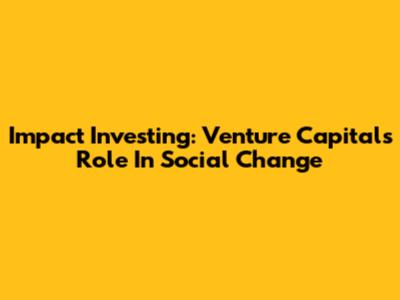 Impact Investing: Venture Capital's Role In Social Change