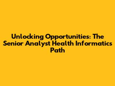 Unlocking Opportunities: The Senior Analyst Health Informatics Path