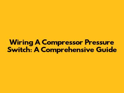 Wiring A Compressor Pressure Switch: A Comprehensive Guide
