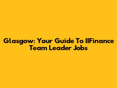 Glasgow: Your Guide To IIFinance Team Leader Jobs