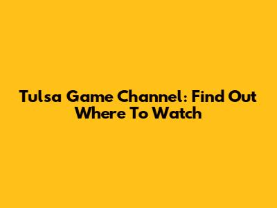 Tulsa Game Channel: Find Out Where To Watch