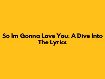 So I'm Gonna Love You: A Dive Into The Lyrics