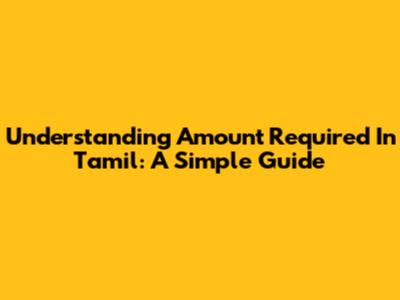 Understanding 'Amount Required' In Tamil: A Simple Guide
