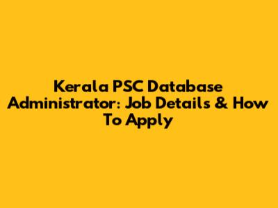 Kerala PSC Database Administrator: Job Details & How To Apply