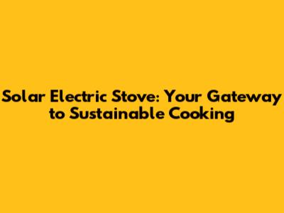 Understanding Solar Electric Stoves: A Primer