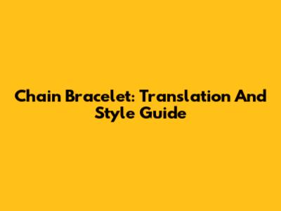 Chain Bracelet: Translation And Style Guide