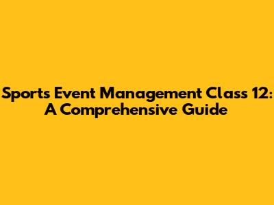 Sports Event Management Class 12: A Comprehensive Guide