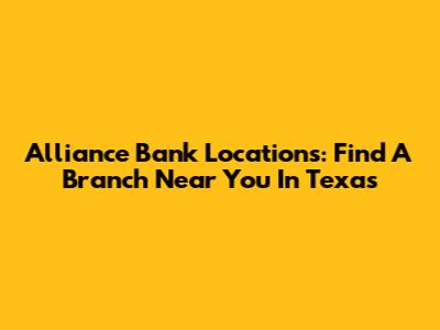 Alliance Bank Locations: Find A Branch Near You In Texas