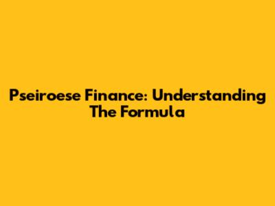 Pseiroese Finance: Understanding The Formula