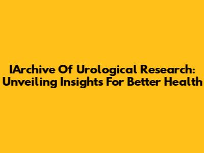 IArchive Of Urological Research: Unveiling Insights For Better Health