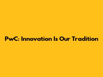 PwC: Innovation Is Our Tradition