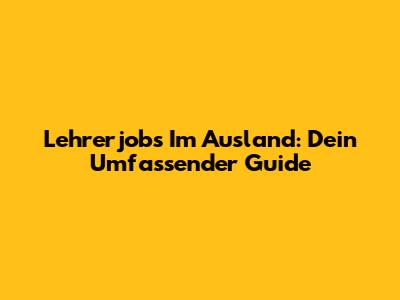 Lehrerjobs Im Ausland: Dein Umfassender Guide