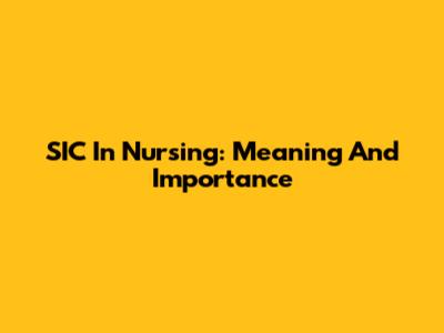 SIC In Nursing: Meaning And Importance