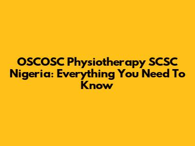 OSCOSC Physiotherapy SCSC Nigeria: Everything You Need To Know