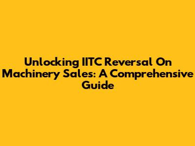Unlocking IITC Reversal On Machinery Sales: A Comprehensive Guide