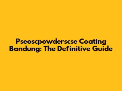 Pseoscpowderscse Coating Bandung: The Definitive Guide