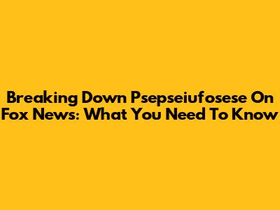 Breaking Down Psepseiufosese On Fox News: What You Need To Know