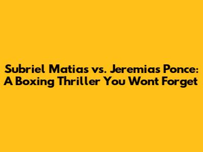 Hey fight fans, let's dive into the electrifying showdown between Subriel Matias and Jeremias Ponce! This match wasn't just a fight; it was a pure boxing spectacle, filled with drama, power, and a whole lot of heart. If you missed it, you absolutely missed out. If you saw it, well, let's relive those incredible moments, shall we?