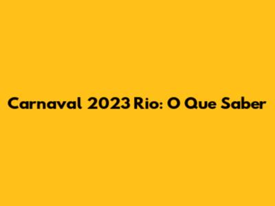 Carnaval 2023 Rio: O Que Saber
