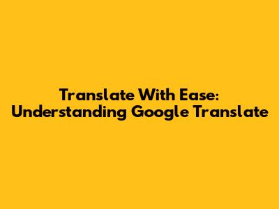 Translate With Ease: Understanding Google Translate