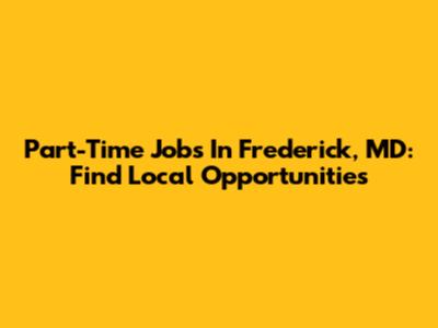Part-Time Jobs In Frederick, MD: Find Local Opportunities
