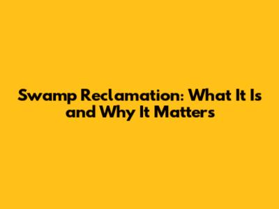 Why Swamp Reclamation Matters