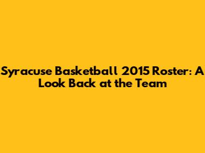 Hey sports fans! Let's take a trip down memory lane and dive into the Syracuse Orange basketball roster from the 2015 season. It's always fun to revisit these squads, remember the players, and reminisce about the games. The 2015 team had its share of ups and downs, facing challenges and showcasing some serious talent. We're going to break down the key players, their roles, and what made this team tick. So, grab your popcorn, and let's get started with a look at the Syracuse basketball roster from 2015! It was a season filled with excitement and, like always with the Orange, a rollercoaster of emotions for the fans. This article will go through each player to examine what their contributions were to the team. Let's delve into the details of the Syracuse basketball roster of 2015. We'll examine the key players and their impact on the team's performance throughout the season. The 2015 team had a unique blend of experience and fresh talent. This made the dynamics of the team quite interesting. Understanding their roles is key to appreciating what made the team special. So, ready to take a look at the 2015 Syracuse basketball roster? Let’s explore!