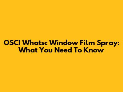 OSCI Whatsc Window Film Spray: What You Need To Know