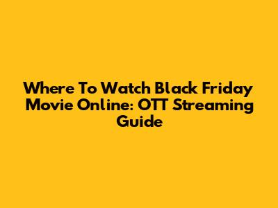 Where To Watch Black Friday Movie Online: OTT Streaming Guide