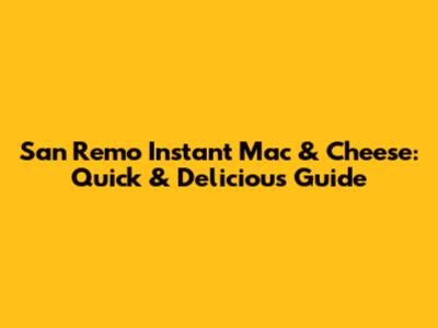 San Remo Instant Mac & Cheese: Quick & Delicious Guide
