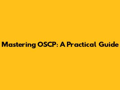 Mastering OSCP: A Practical Guide