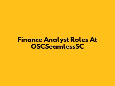 Finance Analyst Roles At OSCSeamlessSC